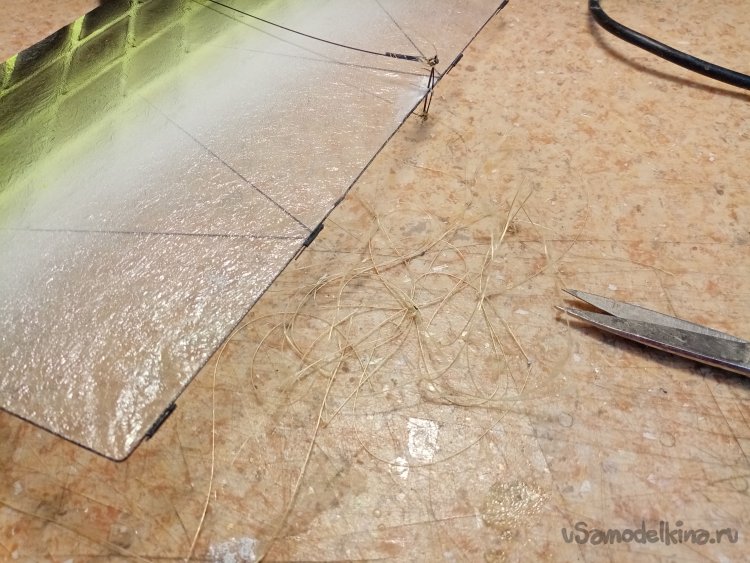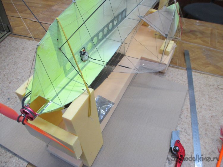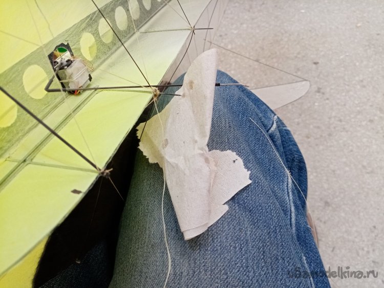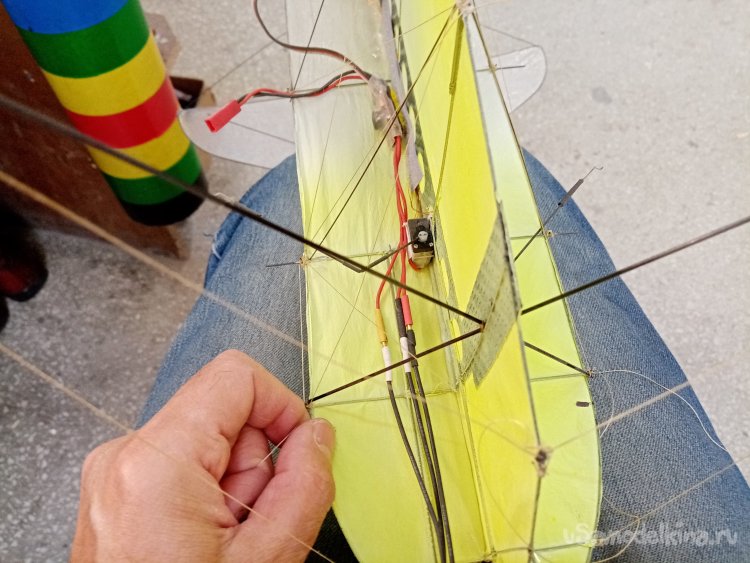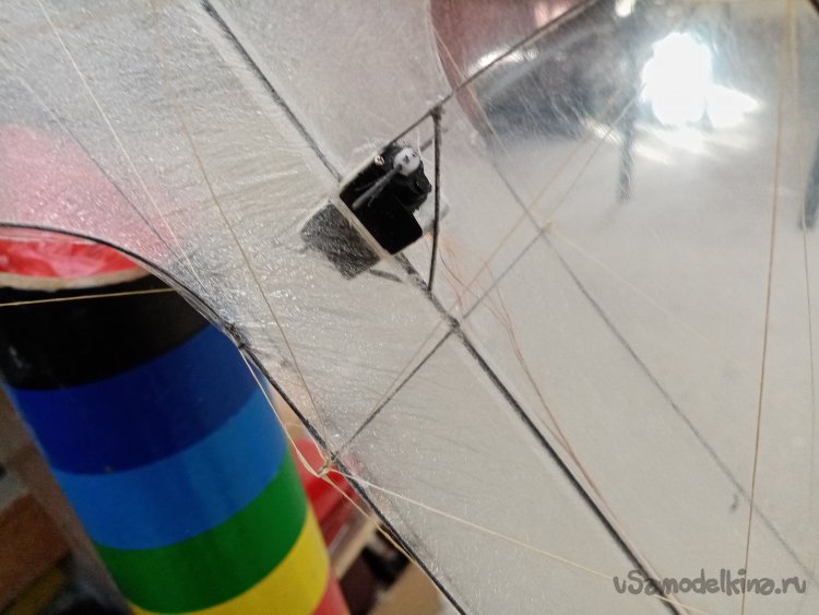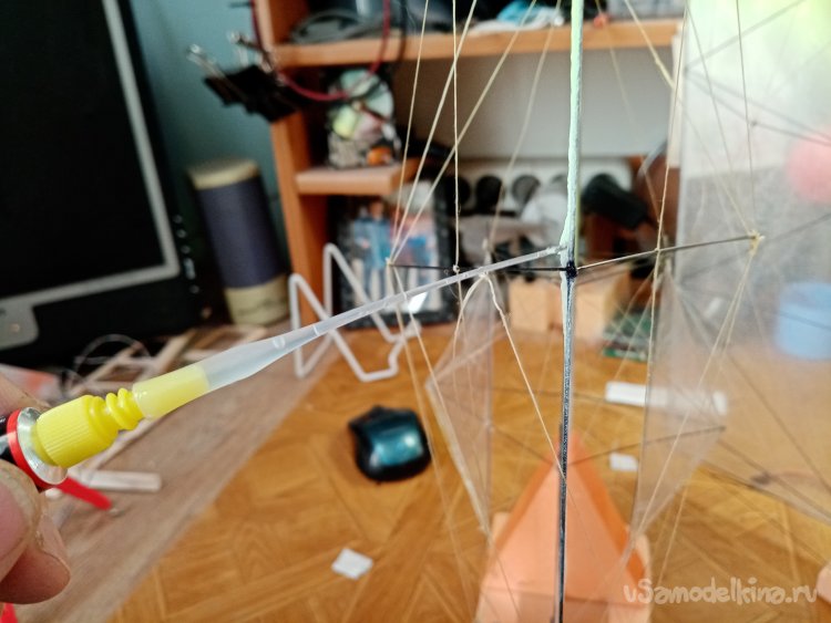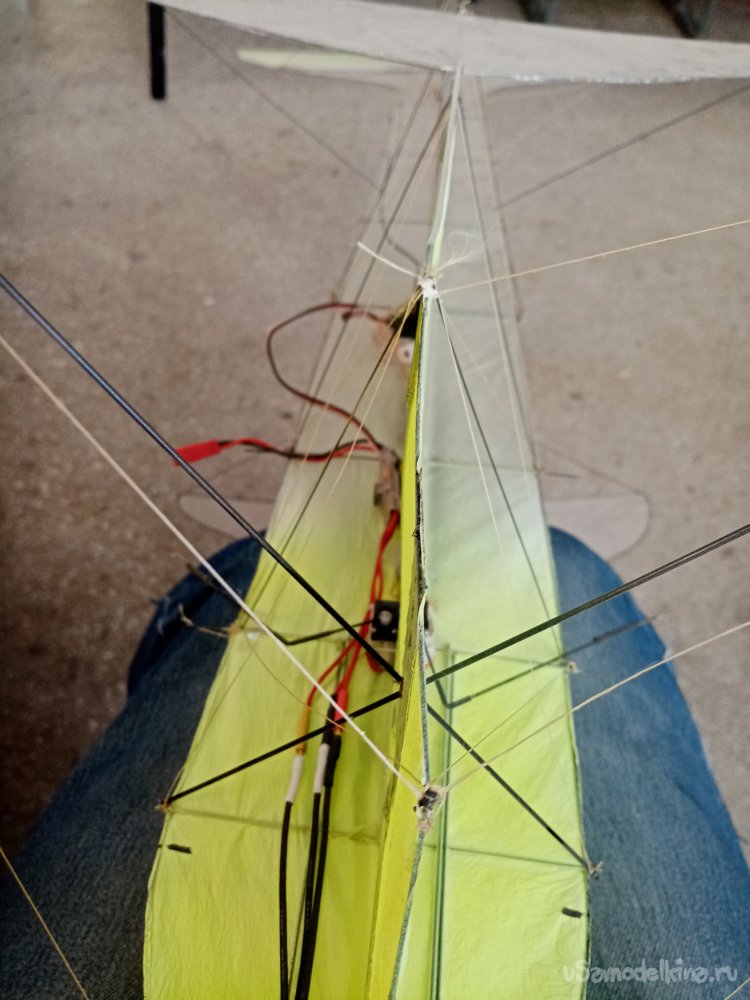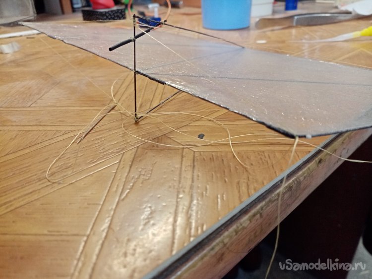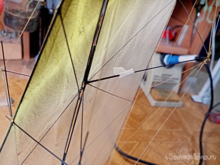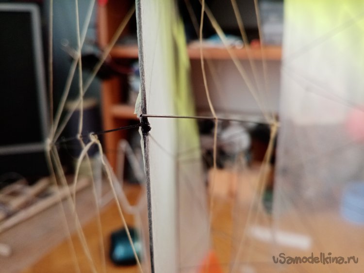 Некоторые растяжки на элементах фюзеляжа провисли. Отрезаю их и перетягиваю по новой.