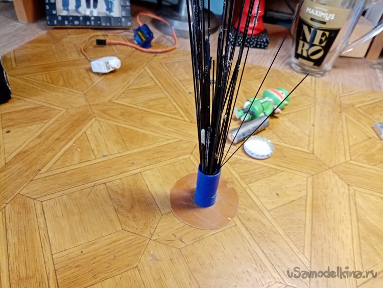 Чтобы обрезки прутиков не мешались на столе, быстро изготовил «стаканчик» подставку. Собрал на циакрине.
