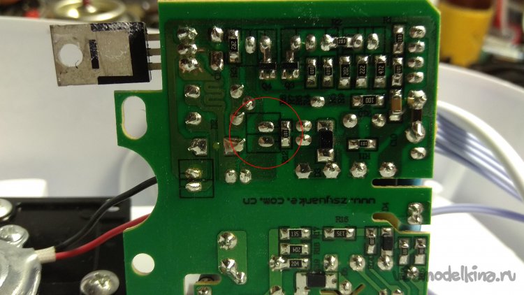 Пластик корпуса хоть и белый, но малопрозрачный. В нижней части, там, где выступает пупсик из корпуса, сделал отверстие под светодиод.