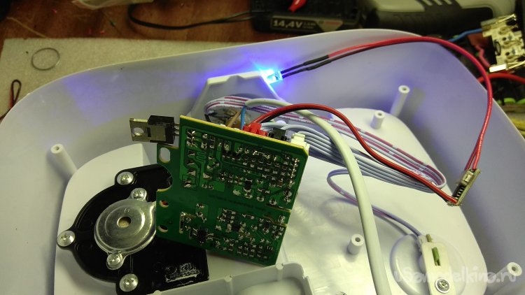 Во время пользования увлажнителем особенно в темноте не виден уровень воды в баке. Сделаю модернизацию, добавлю подсветку бака. Решил использовать RGB светодиод со встроенным контроллером. Надо только найти, куда и как его подключить.