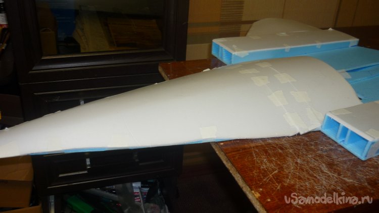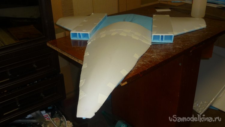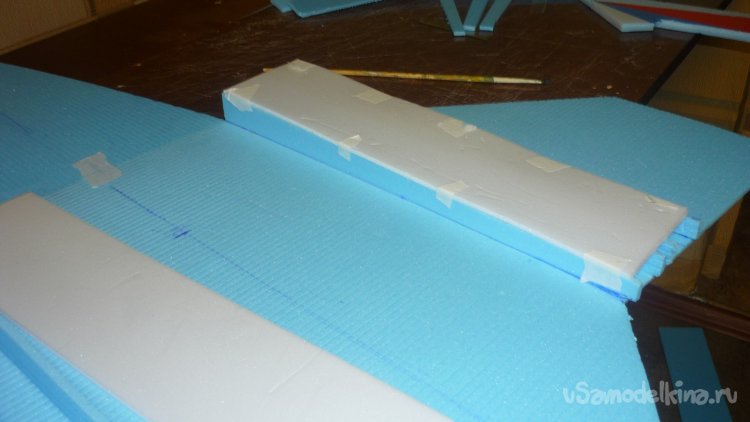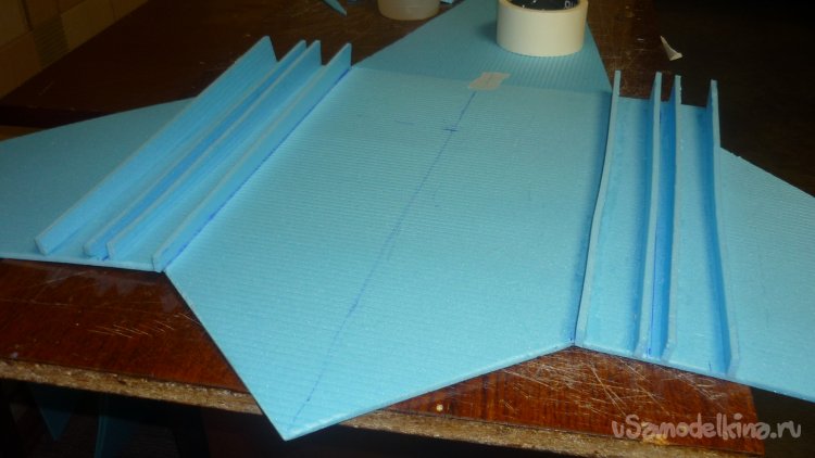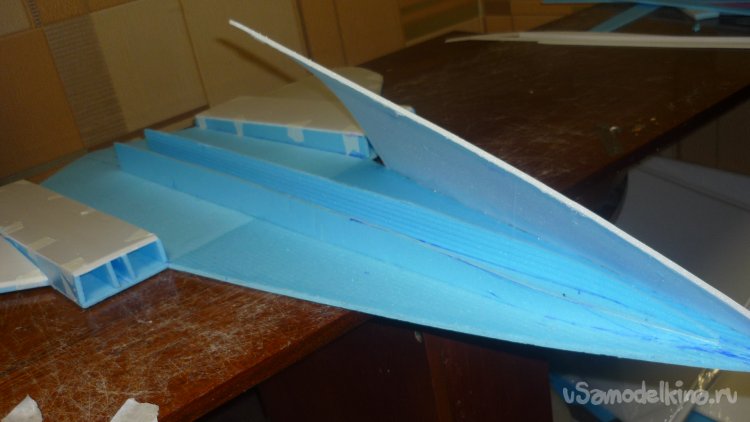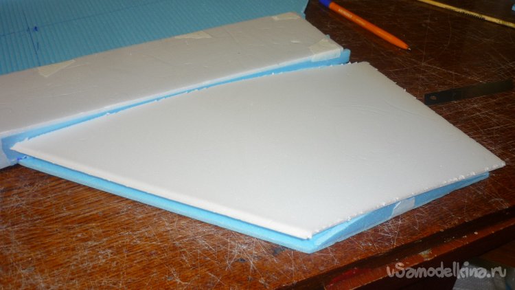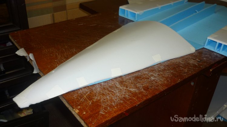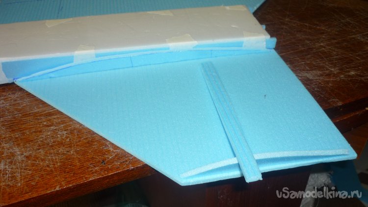 Вырезал первую заготовку хвостовой части несущей поверхности модели.