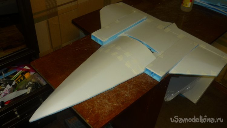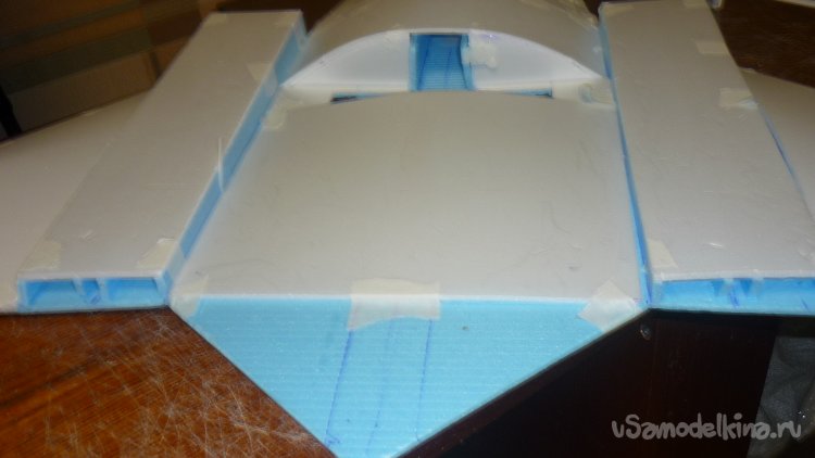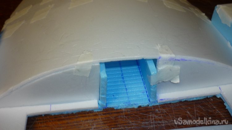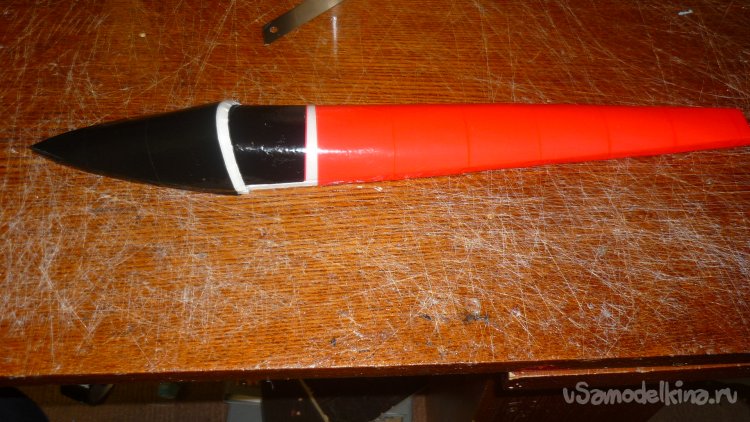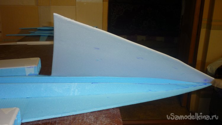 Выкроил и носовую часть, состыковал с хвостовой частью и подогнал по размерам.