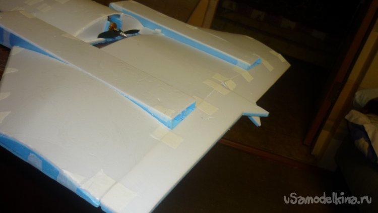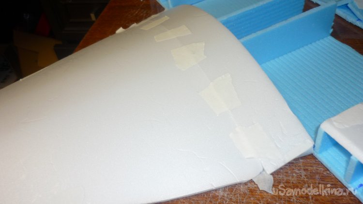 Срезаю переднюю, нижнюю кромку эдевонов под углом и навешиваю на бумажный, малярный скотч.