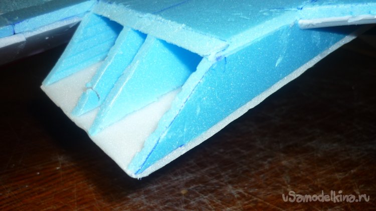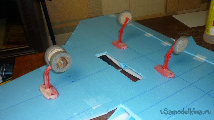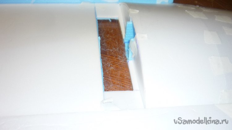 В места установки шасси, вклеиваю кусочки 3 мм. фанеры.