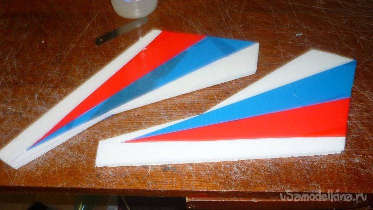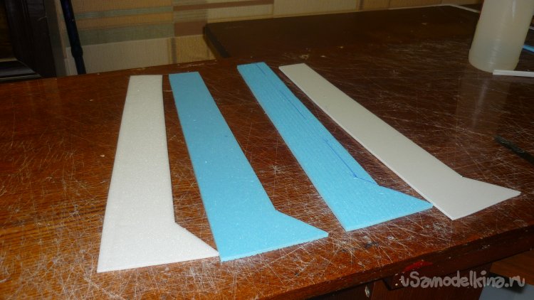 Вырезаю заготовки для элевонов и склеиваю в два слоя.