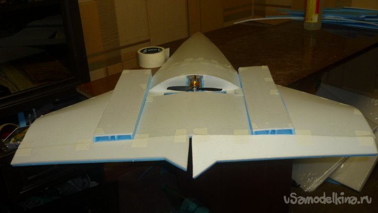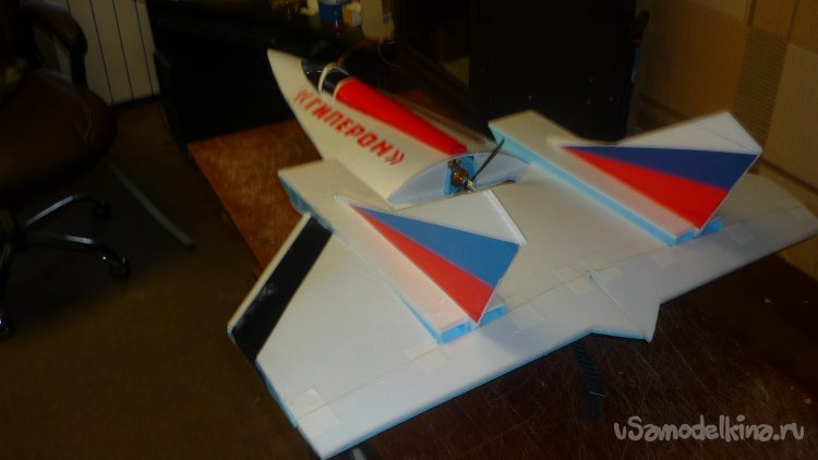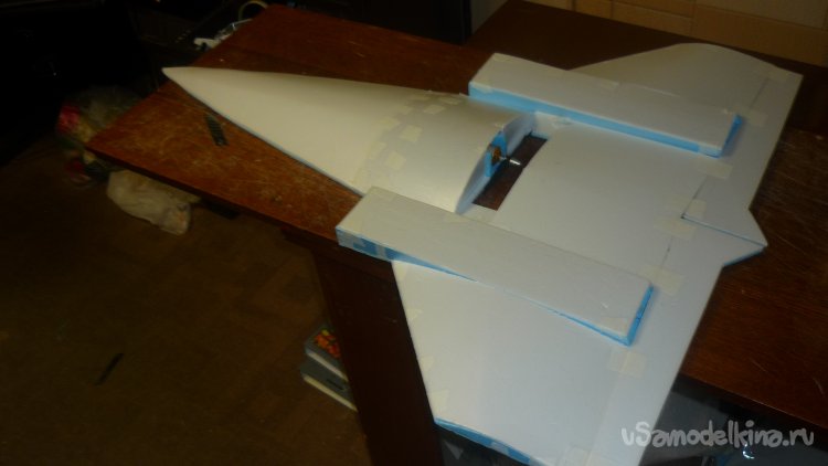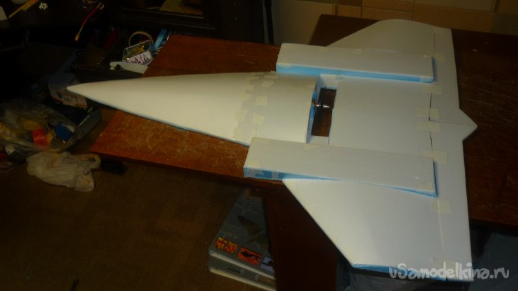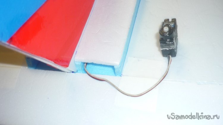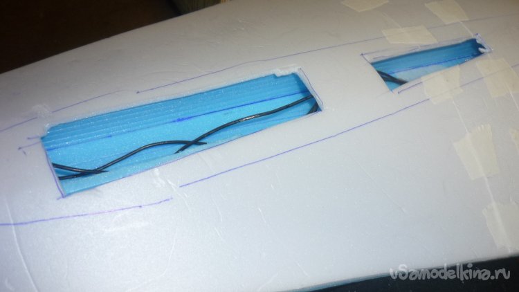 Размечаю места для установки сервомашинок управления элевонами, примеряю, прокладываю провода.
