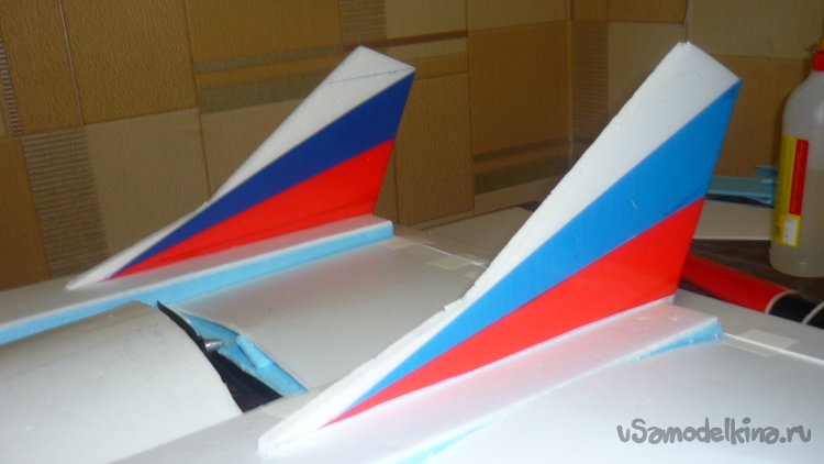 Кили вырезаю и склеиваю из двух слоёв подложки, примеряю и подгоняю по месту.