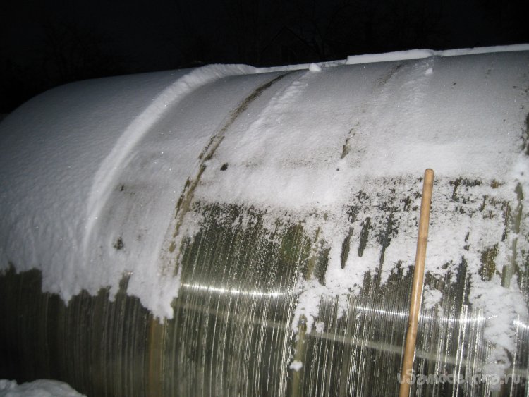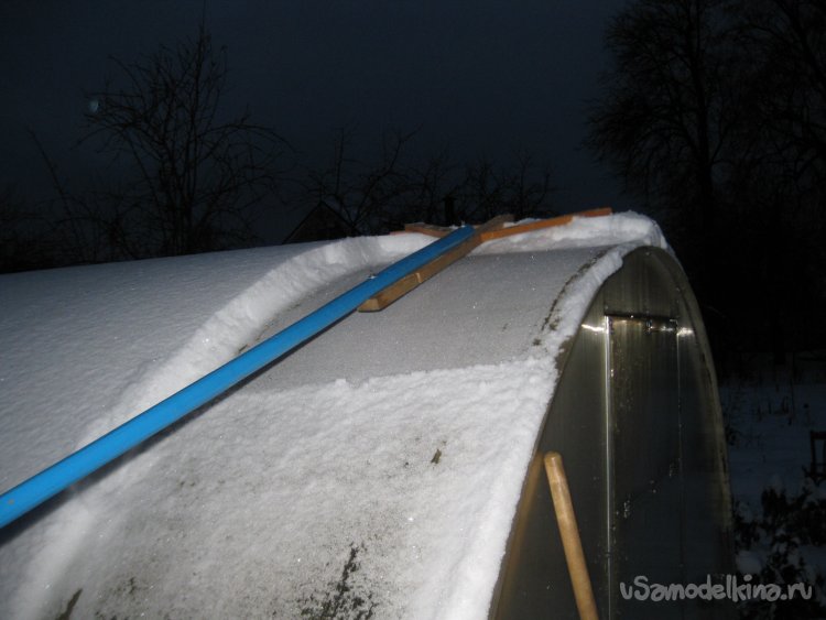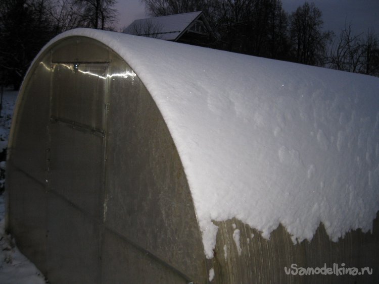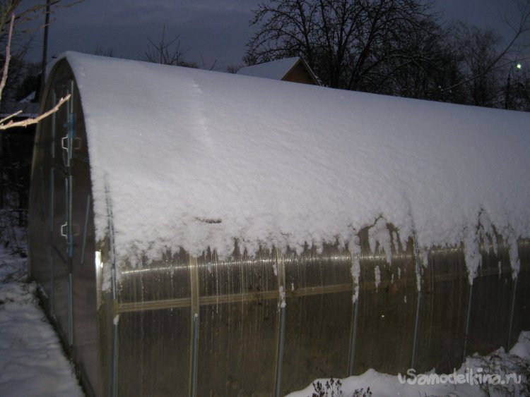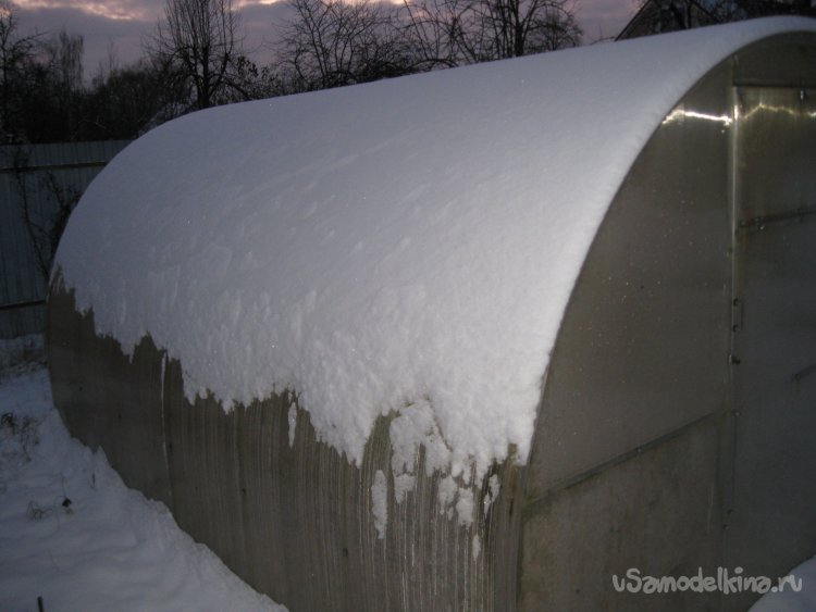 И это при толщине слоя снега на крыше теплицы в три-пять сантиметров.