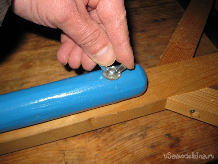 Ну, а на самой рукоятке устройства, имеются два отверстия с мебельными болтами и барашковыми гайками М6, для крепления длинной рукоятки.