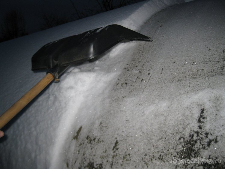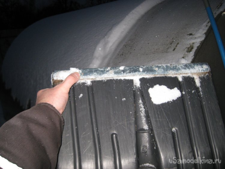 Кстати, если нет подобного приспособления, снег можно счищать и просто лопатой, хотя это не так удобно и будет дольше по времени.