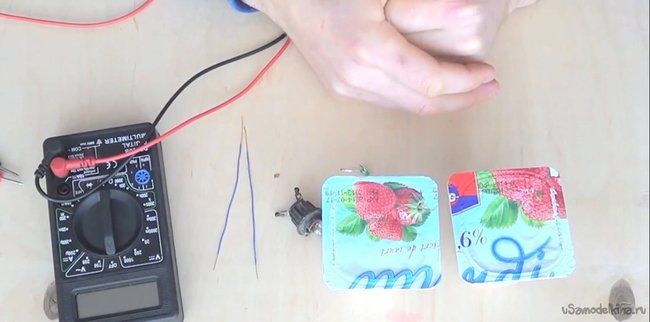Давайте повторим этот необычный эксперимент и убедимся сами, что йогурт может дать энергию не только для работы наших мышц и мозга, но также для того, чтобы небольшая лампочка излучала самый настоящий свет. Итак, нам понадобиться клубничный йогурт (почему именно клубничный, сказать сложно, но факт говорит о то, что йогурты других вкусов такого эффекта не вызывают), один светодиод, небольшая лампа накаливания, два провода и тестер, чтобы проверить сколько вольт даёт один йогурт.