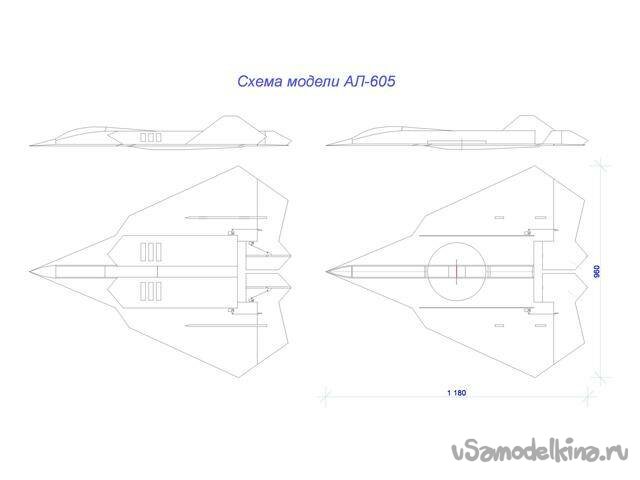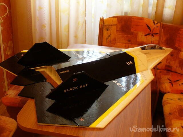 Я решил воспользоваться разработками Сергея Александрова, взяв за основу идею, которую он пытался претворить в жизнь на своей авиамодели AL-605 AMPI "BLACK BAT" (Чёрная летучая мышь).
