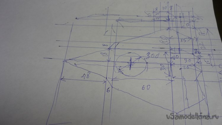 Вырезал перегородки – нервюры, которые будут создавать профиль фюзеляжа и крыла.