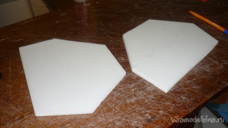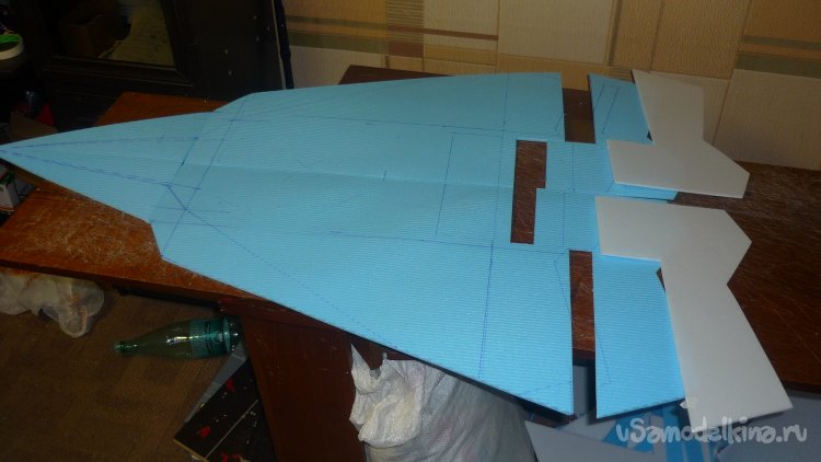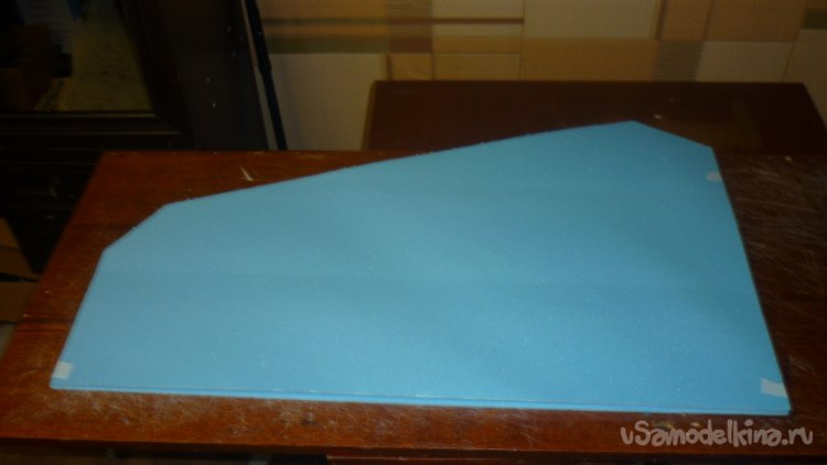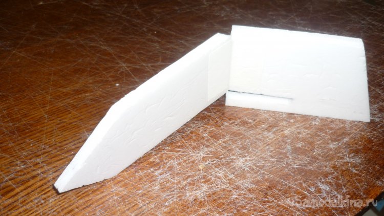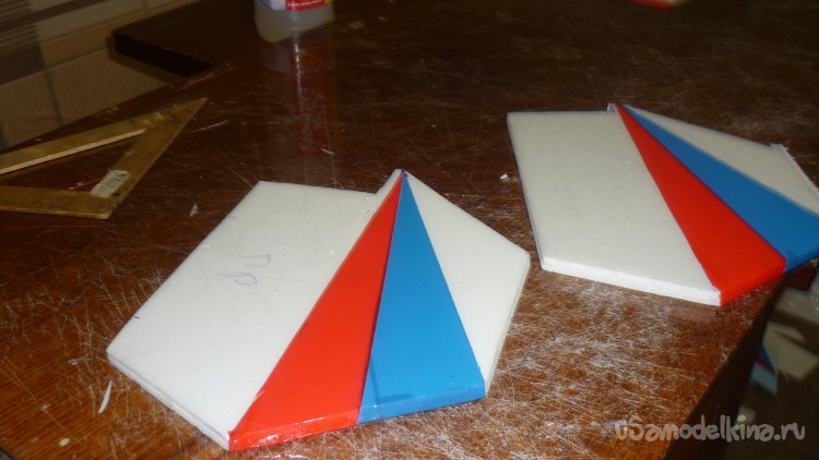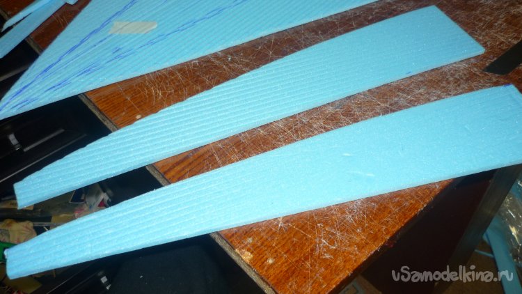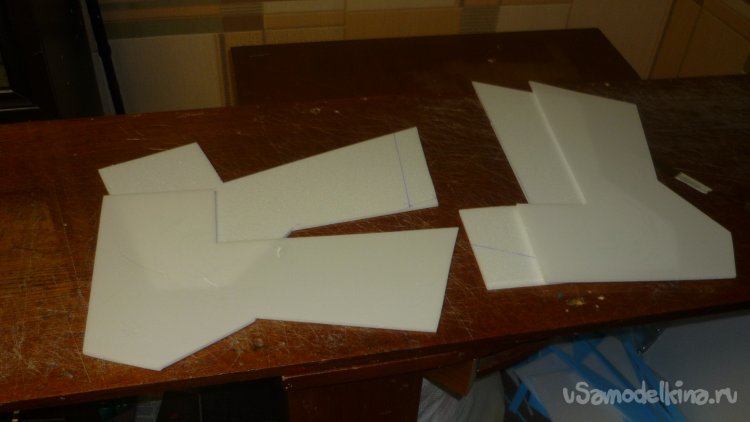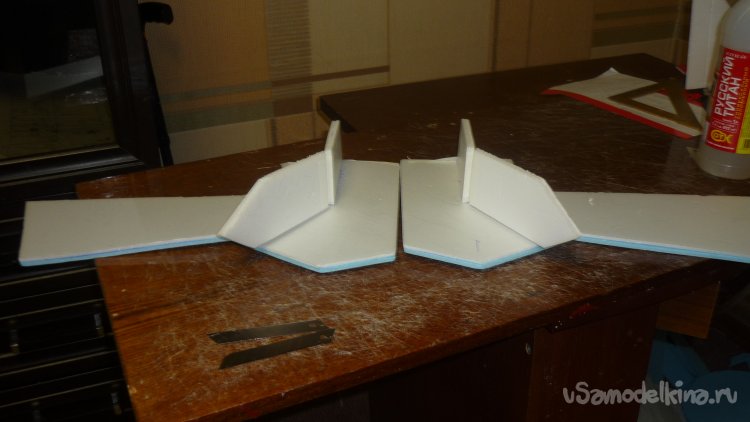 Сразу же вырезал заготовки для элевонов из потолочки. Но подумав, решил делать из двух слоёв - подложка + потолочка.