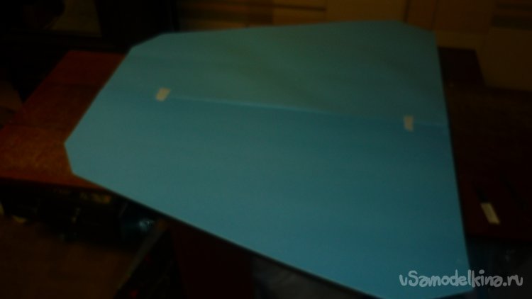 Делаю заготовки для рулей направления, навешиваю их на бумажный, малярный скотч.