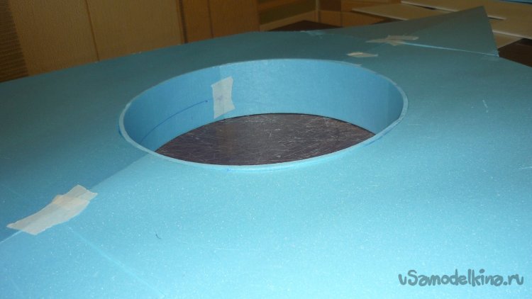 В несущей поверхности разметил и вырезал отверстие для обечайки.