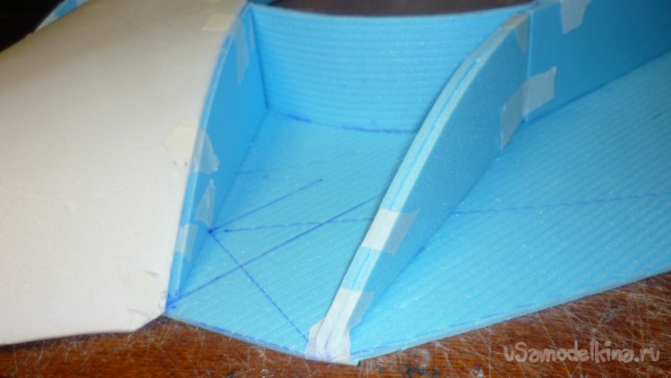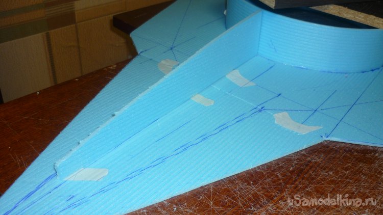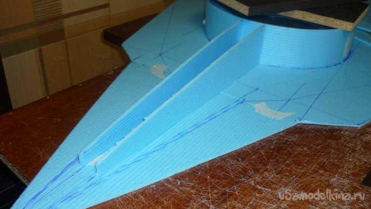 Делаю прорези во внешней обшивке модели, для установки килей.