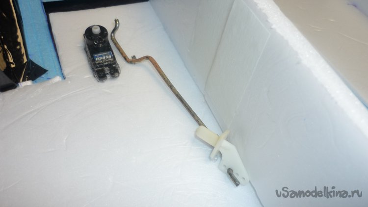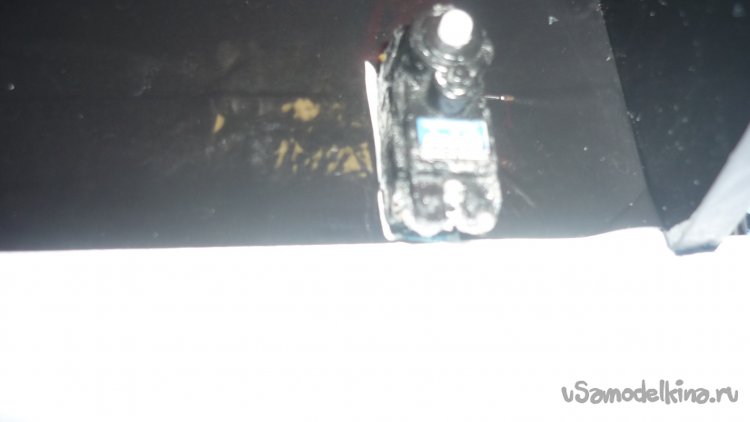 Размечаю места установки сервомашинок на руль направления, монтирую.