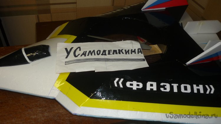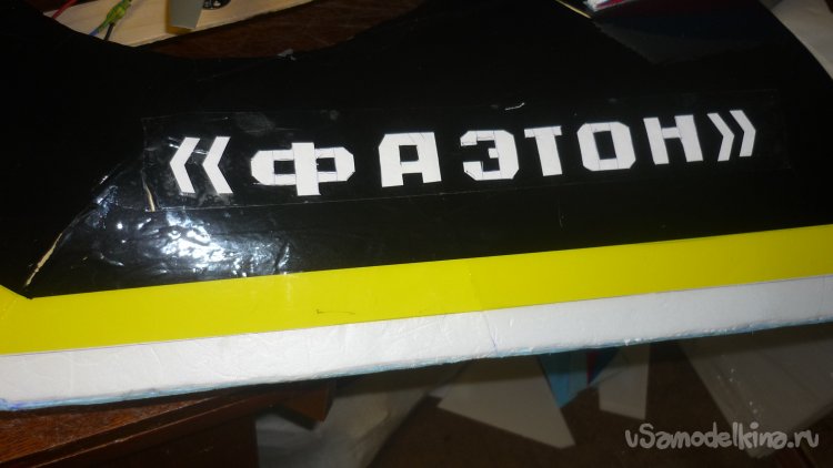 Закончил обтяжку модели цветным скотчем, сделал надписи.