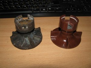 Подложил дополнительную резиновую прокладку в надежде, что резинки скомпенсируют дефект, но не тут- то было. Снова жидкость закипела при 3000 об. в мин. Снял бачок и вручную круговыми движениями боковой плоскостью наждачного круга сошлифовал неровности. На наждаке или шлифовальной машине можно испортить бачок.