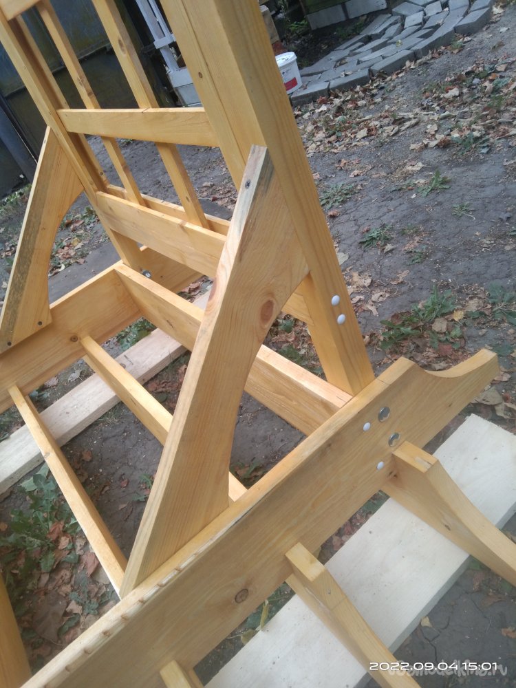 Звоню заказчику. Ставлю его в известность что изделие готово и жду забрать перголу. Приезжает. Попросил рулетку и не поленился ведь обмерить все те параметры, которые указал на своем листке с рисунком. Но это ничего, это в принципе в норме, заказчик должен убедиться что все именно так, как он хотел и за что он платит деньги. Все вроде норм, но смотрю что-то мнется. Спрашиваю прямо - что, мол не так. Он и говорит, подумал что для установки в землю необходимо установить на ножки металлические уголки. Блин, а заранее этого нельзя было сказать?! время на подумать было море! Но про истории о заказчиках и о том какие они бывают, можно написать целую статью! Пришлось искать уголки и ставить их. Фотографий перголы с уголками нет. не сделал, т.к. закончил ночью и откровенно говоря стало реально лень.