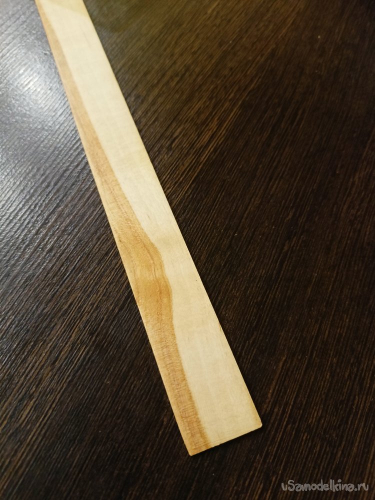 6. У меня была рейка толщиной 2мм и шириной 25мм.(отшлифованная берёзовая линейка с красивым рисунком) И я решил использовать её.
