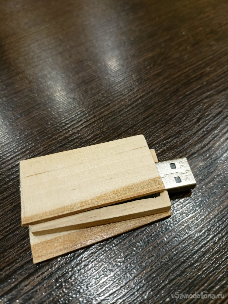 Скорее всего сделаю ещё одну флешку, но с механизмом открывания. Мне как раз привезли небольшой кусочек красного дерева для основания флешки.