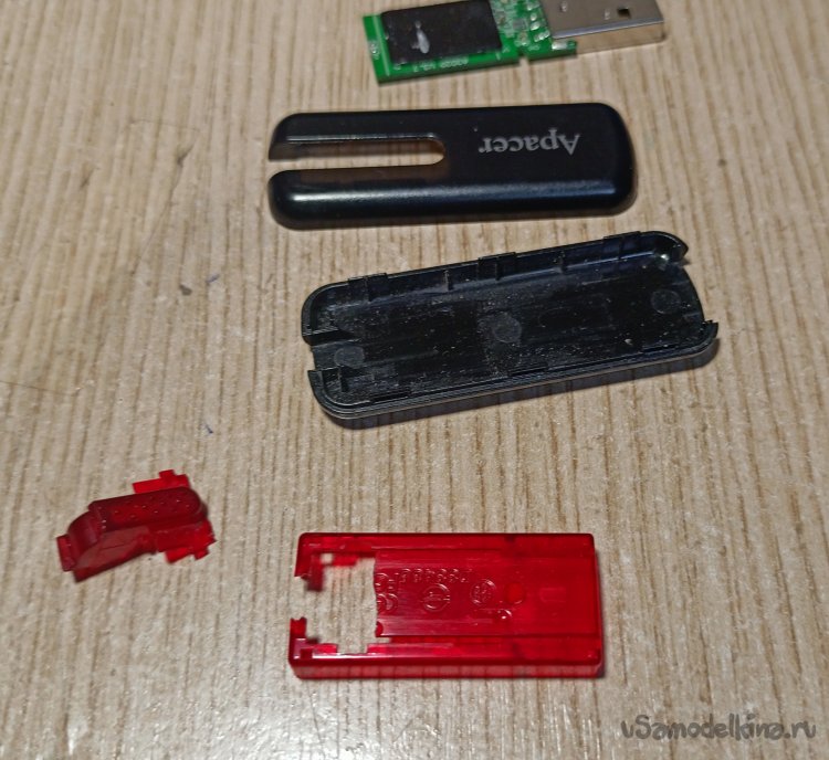 7. Вот и старый сломанный корпус флешки. Разбираем её ножом и достаем плату.