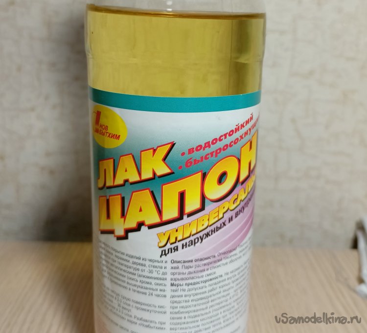 30. Для покрытия используем лак «Цапон» кисточки и растворитель (для очищения кисточки от лака) и баночку под растворитель.
