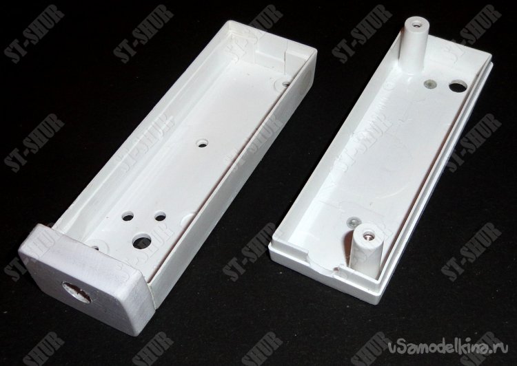 Лишние отверстия, имевшиеся в корпусе, были заклеены. В нижней части корпуса пластиковой полоской толщиной 0,6мм. В верхней части корпуса информационной наклейкой.