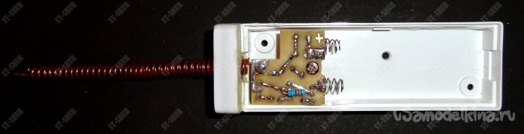 Для подключения батарейки к плате использованы готовые пружинки, оставшиеся от каких-то батарейных отсеков детских игрушек. Благодаря им батарейка легко заменяется, а при установке ее в корпус прижимается к его задней стойке, поэтому какая либо «болтанка» батарейки внутри корпуса отсутствует.