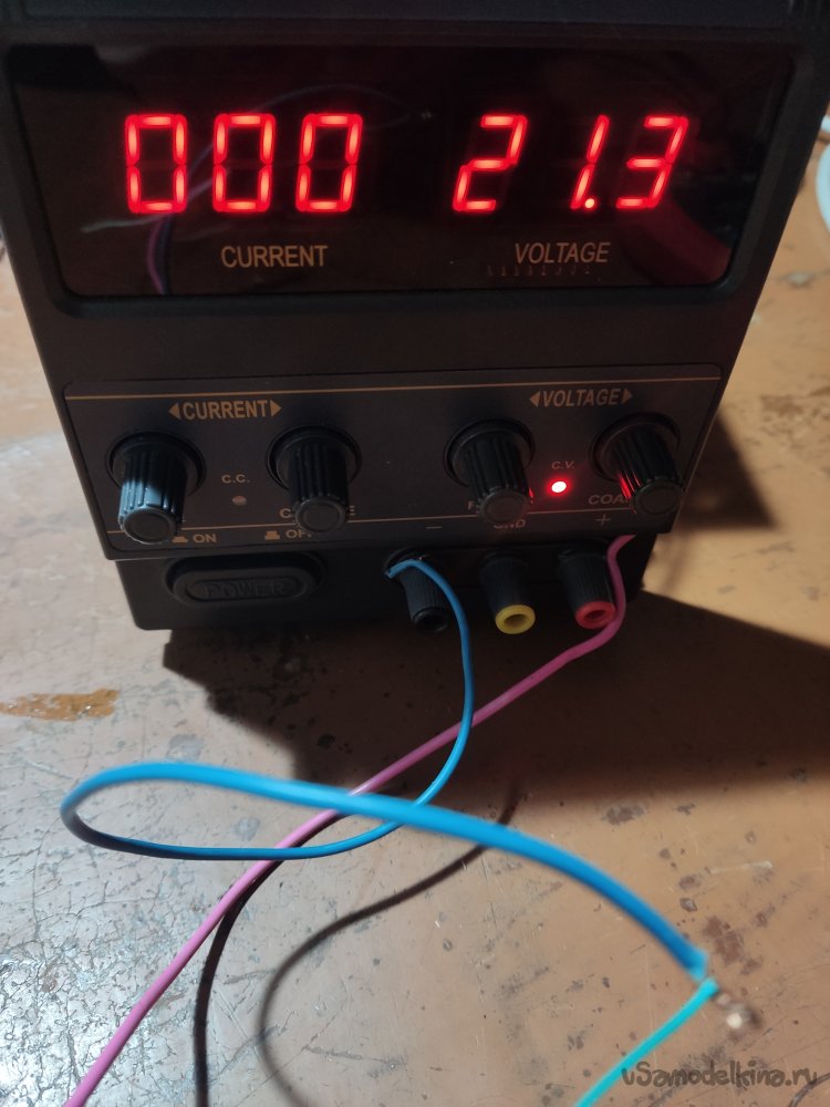 Питать я буду чуть больше двадцати вольт, от лабораторного источника питания