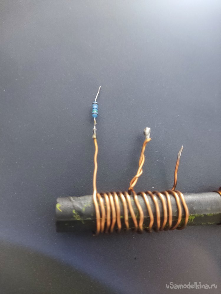 На один из крайних выводов первичной обмотки припаиваем резистор