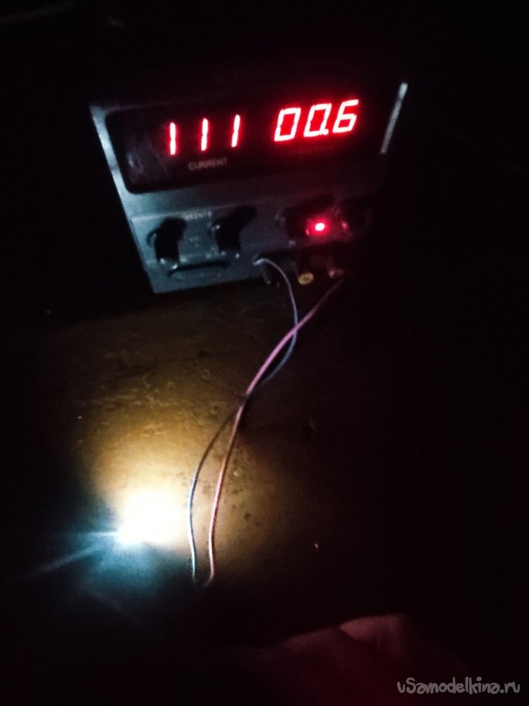 Теперь можно подключать питание, питать я буду от лабораторного блока питания, преобразователь отлично работает уже от 0,6 вольт