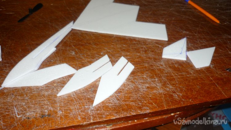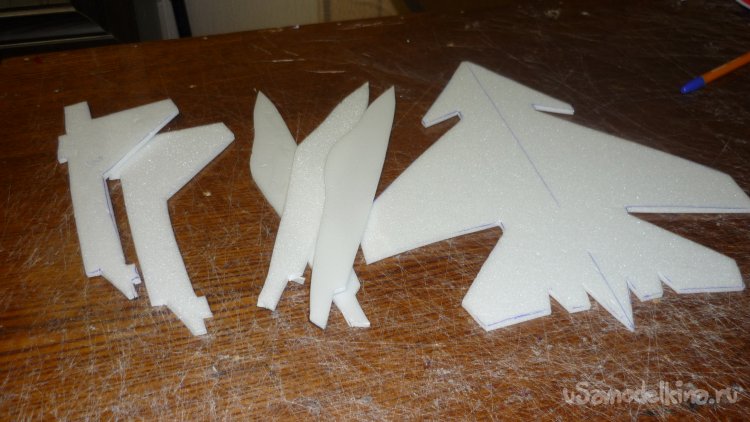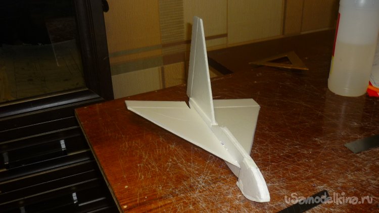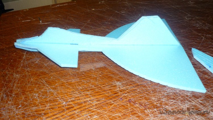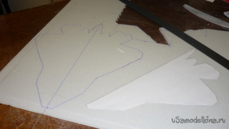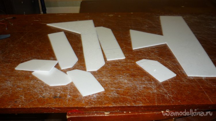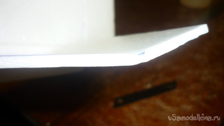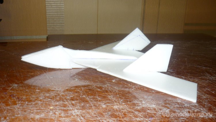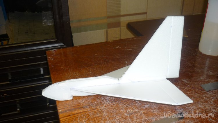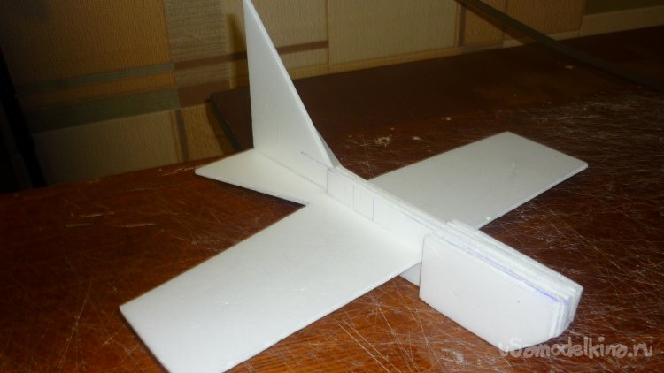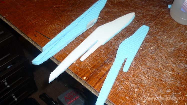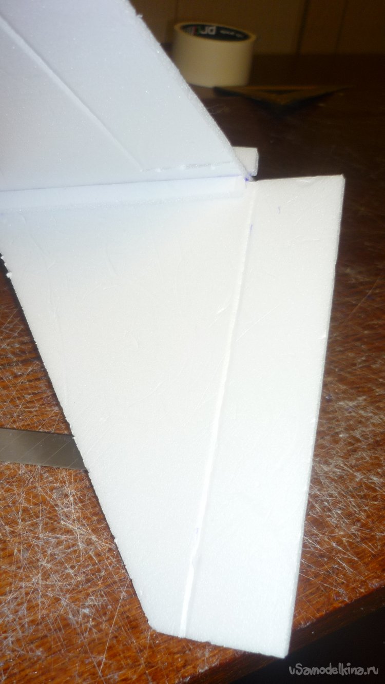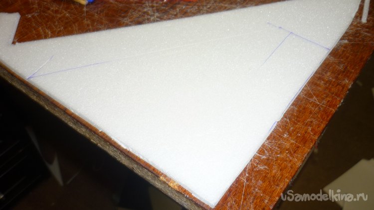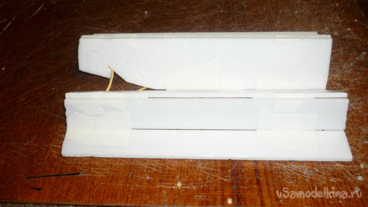 Позже убедился, что подложка более удобна, её толщина 5 мм. позволяет делать крылья моделей с небольшим профилем, стачивая или срезая под углом, переднюю и заднюю верхнюю кромку.