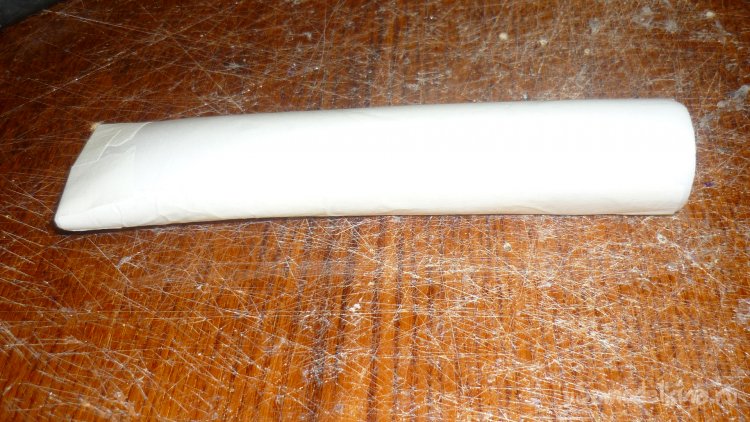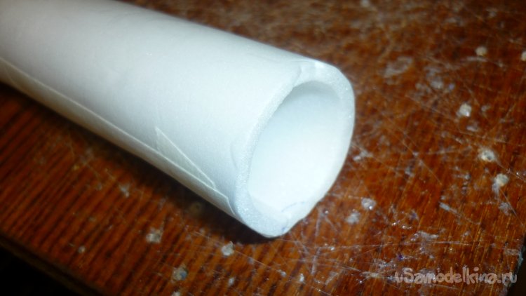 Сворачиваю потолочку в трубочку необходимого диаметра, что бы в неё вставлялся шланг от насоса и склеиваю.
