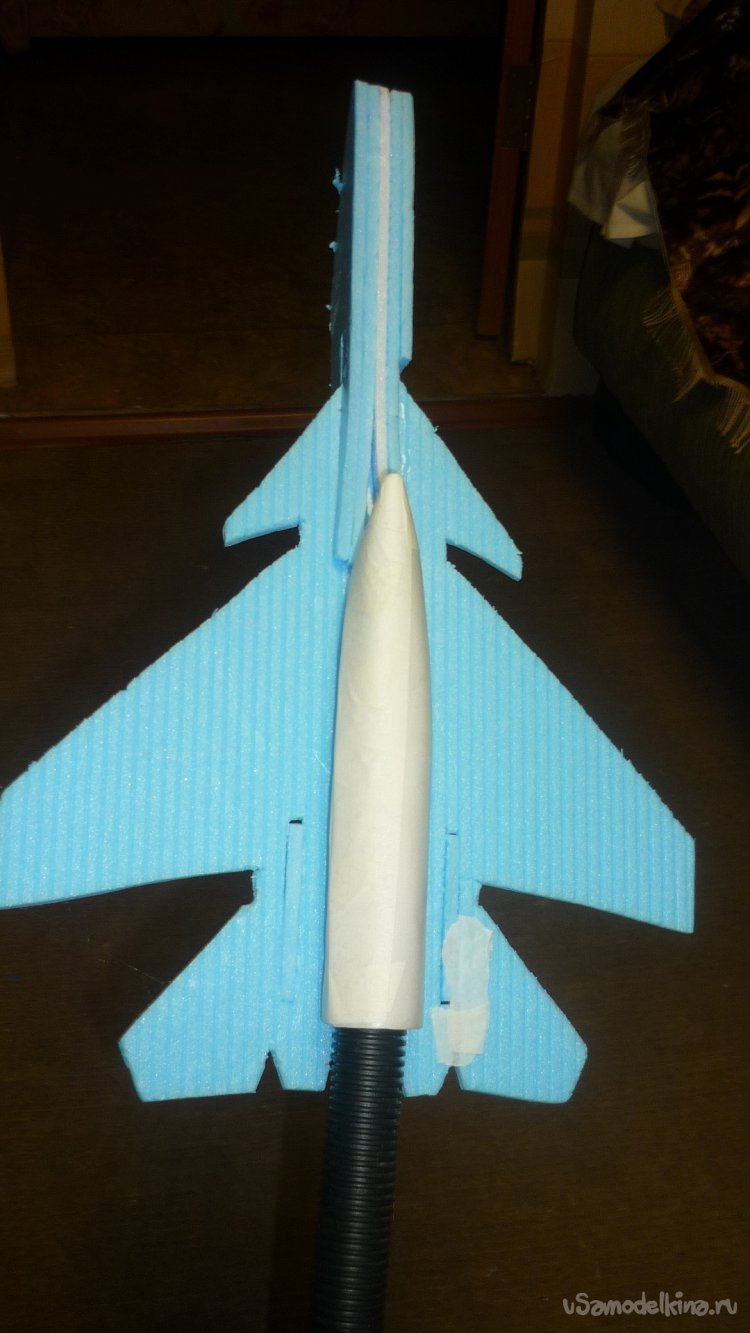 Подсоединяю шланг насоса к модели и нажимаю насос. Модель летит.