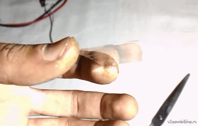 Следующим делом нужно изолировать резисторы, для чего нам понадобится термостойкий изолятор, поскольку резисторы будут нагреваться до 400 градусов по Цельсию. Такие пластинки можно снять со старого паяльника.