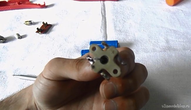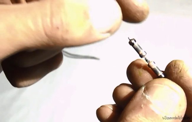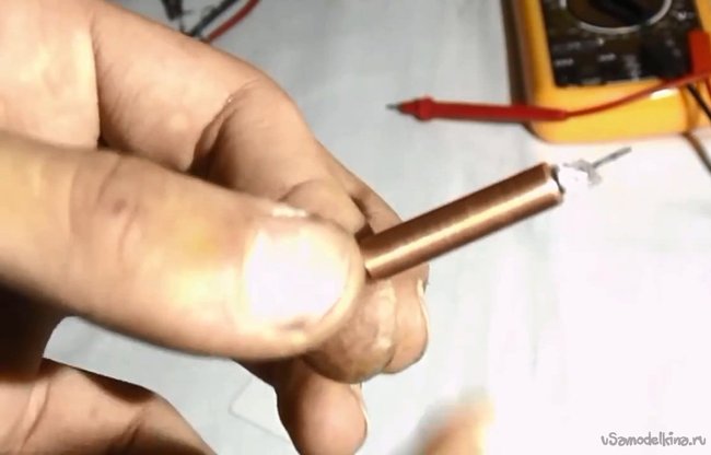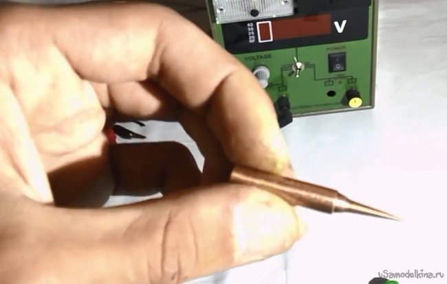 Теперь можно перейти к созданию корпуса, который может быть из любого материала, а также трубки, в которую будет вставлено жало. Берем форму из-под диодов КД 213а. Далее нужно соединить выход резистора к одному из боковых контактов диода, а второй контакт, который идет напрямую к жалу, можно припаять при помощи провода к другому контакту диода.