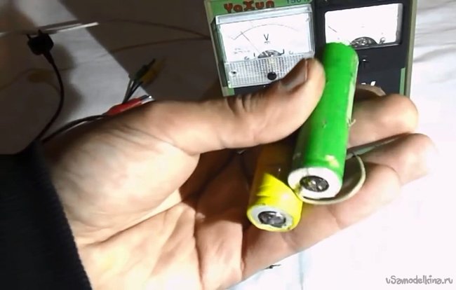 Остается последовательно подключить аккумуляторы и провести провода через выключатель на жало. Следует отметить, что один из полюсов жала должен быть подключен напрямую к аккумулятору. Собрав заготовку можно получить самодельный портативный паяльник, работающий на аккумуляторах.