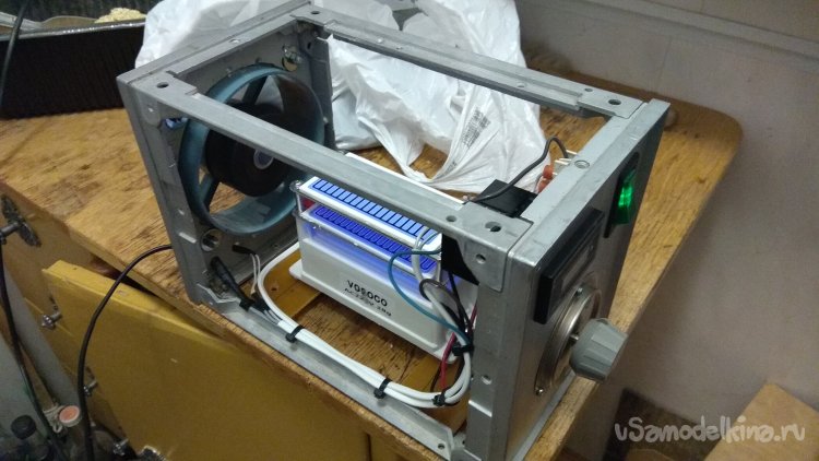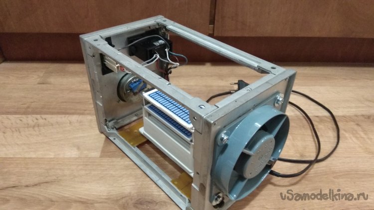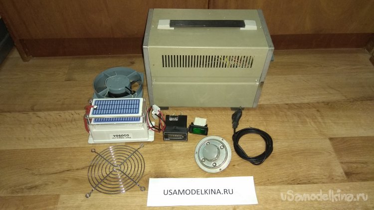 Для создания озонатора необходим корпус с вентилятором, для охлаждения генератора озона и перемешивания воздуха с озоном. Для удобства работы оснастим озонатор реле времени для автоматического выключения. Для постоянной работы (без реле времени) установим дополнительный выключатель. Как вишенка на торте, абсолютно не нужный в конструкции, но весьма симпатичный счетчик-индикатор суммарного наработанного времени озонатора (много лет лежал без применения и вот пригодился).
