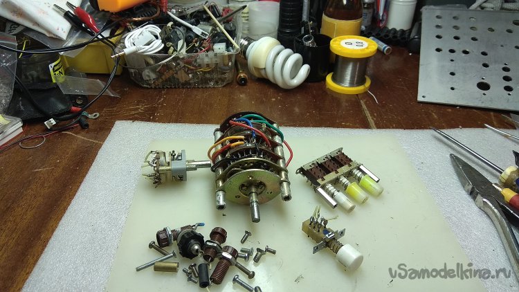 Разбираю корпус. Откручиваю лицевую панель. Солидный галетный переключатель, а применить его как бы и некуда.