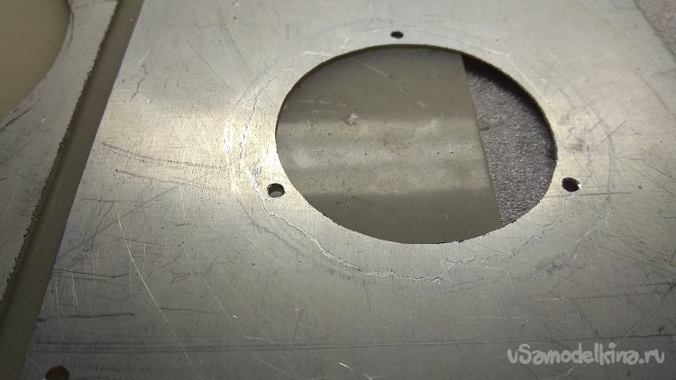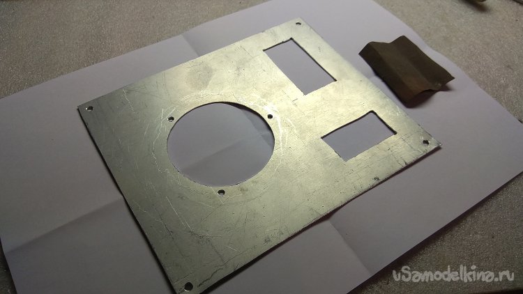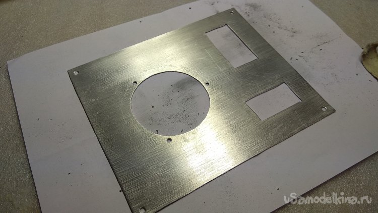 После выпиливания отверстий, на поверхности передней панели остались следы от лобзика.