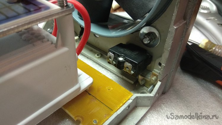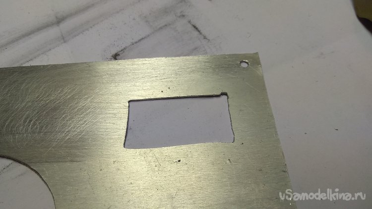 С отверстием под реле времени широкая пилка не справилась. Слишком она широкая, а радиус слишком маленький.