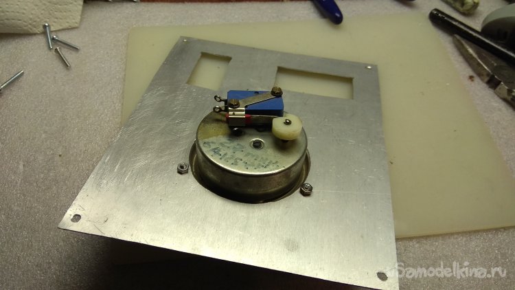 Первоначально хотел закрепить реле времени изнутри, но установив реле снаружи, получилось закрыть корпусом реле царапины на передней панели.