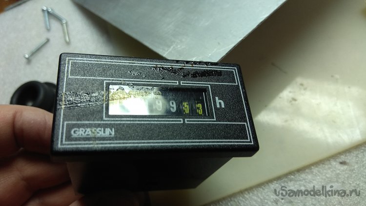 Передняя панель счетчика времени испачкана клеем, не беда, отмоем спиртом. Идея так себе, оказалось спирт растворяет белую краску.