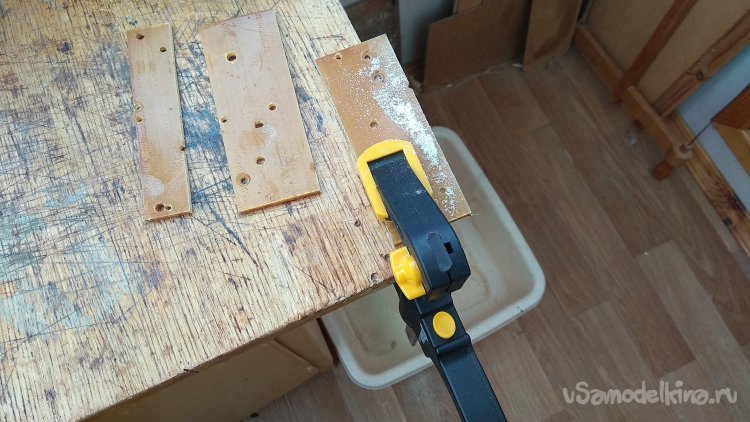 Для крепления генератора озона к стеклотекстолиту, просверлил в пластинах отверстия и нарезал метчиком резьбу. Прикрутил генератор винтами.