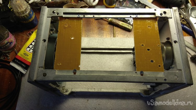 Снимать процесс не стал… Все оказалось не так просто и совсем неудобно. Во-первых, сверло болтается в держателе, отверстия получились овальные; во-вторых, скорость вращения для сверления совсем маленькая, все же это больше отвертка, а не дрель; в-третьих, чтобы хоть немного ускорить процесс, приходилось сильно давить на сверло, при этом из отвертки раздавался такой скрежет шестеренок, а отвертка так жужжала, что становилось боязно за нее, хоть бы не поломать. Не нарезать метчиком резьбу, а сделать винтом, идея тоже так себе. Хоть стеклотекстолит материал не очень твердый, да и отверстия были овальные, но у одного винта шлицы почти полностью срезал, пытаясь им нарезать резьбу. А все из-за желания сделать резьбу плотнее, чтобы винты не выкручивались.