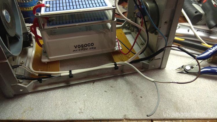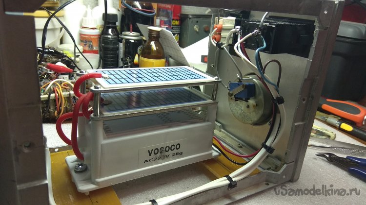 Для начала есть сам генератор озона, достаточно производительный 28 грамм. Питается генератор от сети 220В.