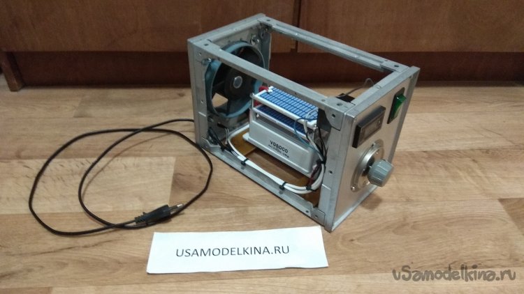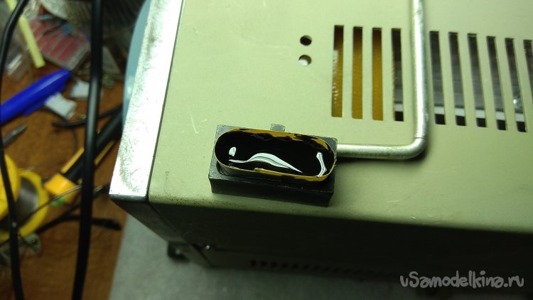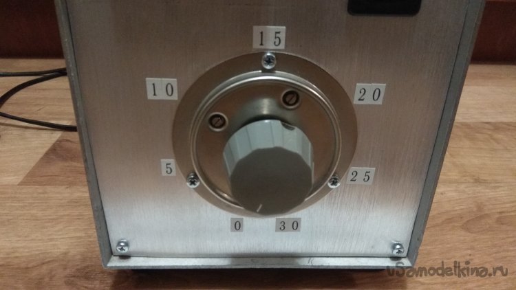 Если честно, как выглядят на приборе бумажные наклейки с цифрами, мне не очень нравится, они визуально подпортили почти «заводской» вид озонатора. Хотелось бы конечно все красиво подписать. Хорошо бы подошел переводной советский шрифт или гравировка. Как вариант, можно попробовать ЛУТ технологию, но для этого придется разобрать переднюю панель. Да и неизвестно, получится ли прикатать текст утюгом к большому шероховатому теплоемкому алюминию. Вариант написать маркером от руки сразу отметается, маркер легко стирается, уж лучше тогда напечатать надписи на бумаге и заламинировать скотчем. Но, как показала практика, скотч долго не выдержит.